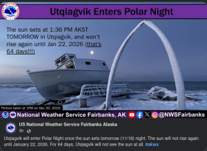 Barrow Amateur Radio, Astronomy, Christmas, Seasons, Winter Add comments Nov 172025 Leave a Reply Cancel reply Your Comment You may use these HTML tags and attributes: <a href="" title=""> <abbr title=""> <acronym title=""> <b> <blockquote cite=""> <cite> <code> <del datetime=""> <em> <i> <q cite=""> <s> <strike> <strong> Name (required) E-mail (required) URI Save my name, email, and website in this browser for the next time I comment.